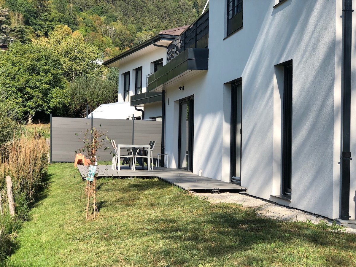 アヌシーから5キロ、バウジュ山脈の自然公園に位置しています。湖と山の間、湖から175m、自転車道から100m。 商店街や中心街に近いので、徒歩(ハイキングの出発)や自転車での滞在に最適で、ビーチまで300メートルです。 国際的なおもてなし(英語、ドイツ語、スペイン語、イタリア語)。新しい高級住宅。