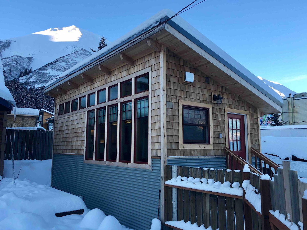 Adorable cottage in the back yard of the local historic coffee house. This custom tiny home was built to take in the grand, south-facing views. Our cottage is in the perfect location in downtown Seward, but it's also privately situated in the backyard and is protected from tourist traffic. Every detail has been considered when putting together this artistic space, and we're excited to share it with you!
