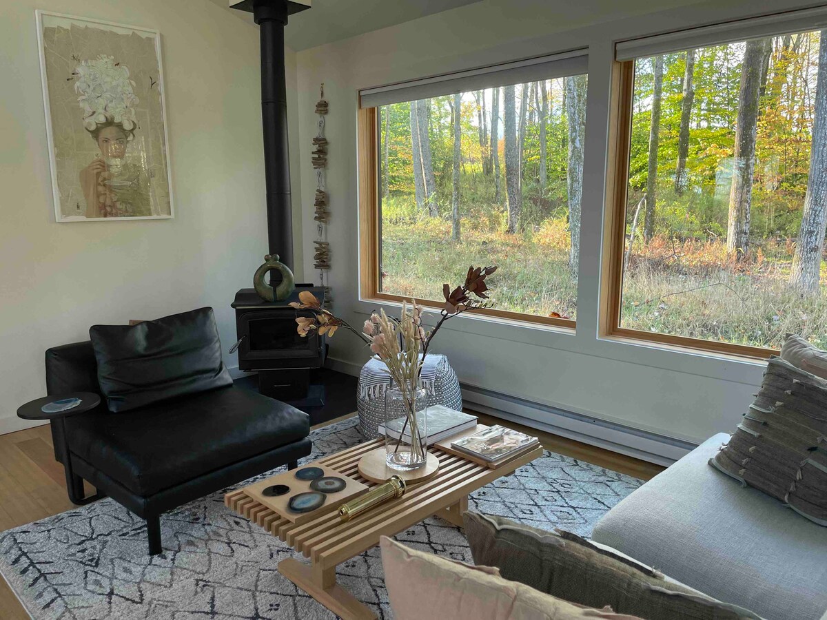 私たちのキャビンは、5エーカーの森にあるスタイリッシュな隠れ家です。 マンハッタンからわずか2時間、Lマナーから12分です。自然の中で1日を楽しんだ後、夜にはニューヨークのレストランや醸造所に行くことができます。 ハイキング、フライフィッシング、スノースポーツへのアクセスも抜群です。 新築のエアコン付きの家には、アーチ型の天井、明るい日光、デザイナー家具、森の景色があります。 デッキで食事を楽しんだり、月の出を眺めたりできます。 11泊以上の料金についてはお問い合わせください