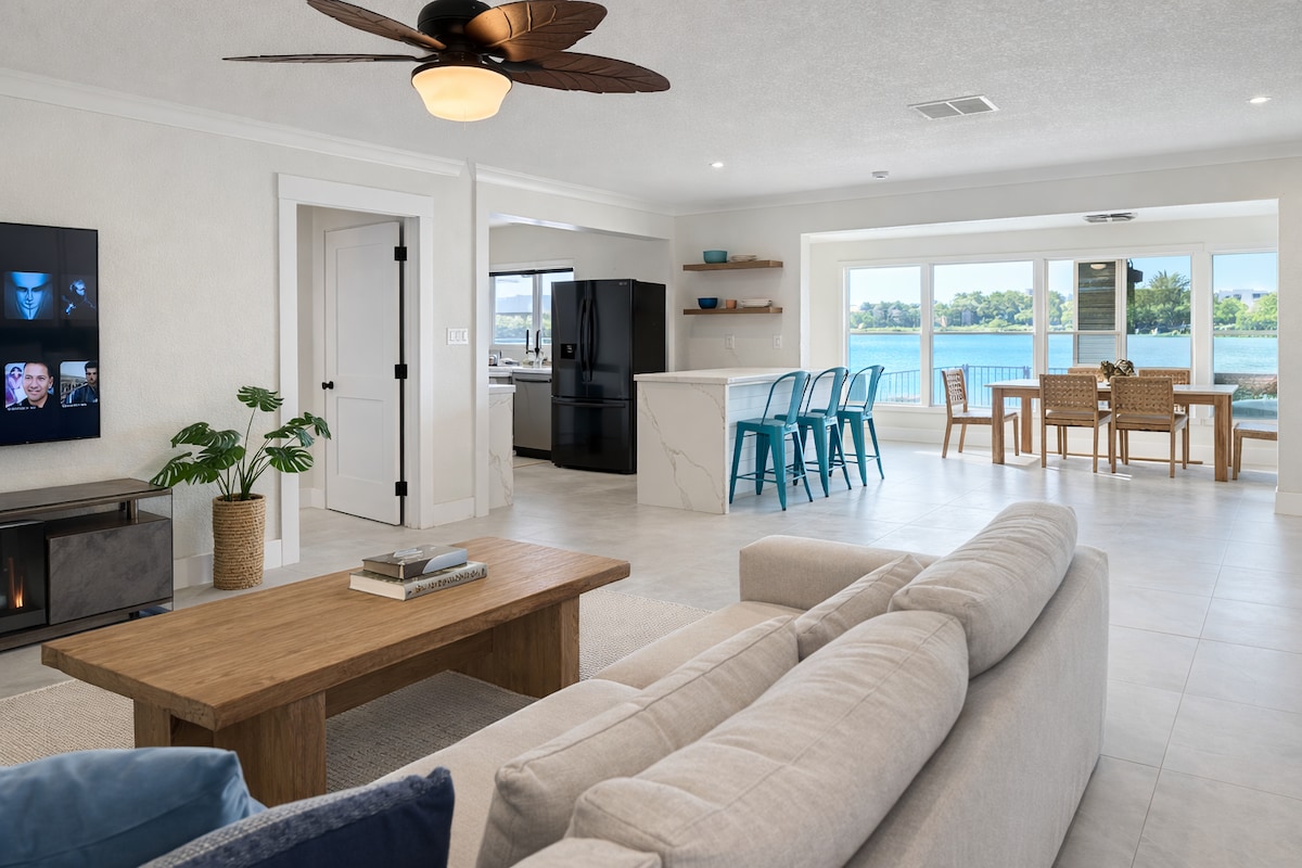 リゾートスタイルのウォーターフロント - 独立型 露天風呂・ジャグジー - ドックからの日の出/夕日の眺め -無料カヤック - インターネット/YouTubeケーブル 65インチスマートテレビ キングサイズベッド、ウォークインクローゼット、薄型テレビを備えた広々とした寝室 ユニット内にある洗濯機と乾燥機 仕事専用スペース ペットOK フェンス付きの専用パティオ 無料の車2台分/ボート駐車場。 中心部に位置(ビーチ、レストラン、タンパ、セントピーツ、セーフティハーバー、ダニーディン) - ルース・エッカード・イベントホールから11分 清潔 コーヒーステーション ダイニングエリア