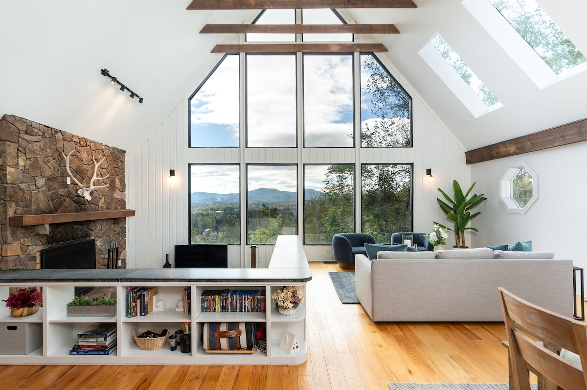 ブルーリッジ山脈の眺望を楽しめる、ゴージャスなモダンマウンテンホーム
