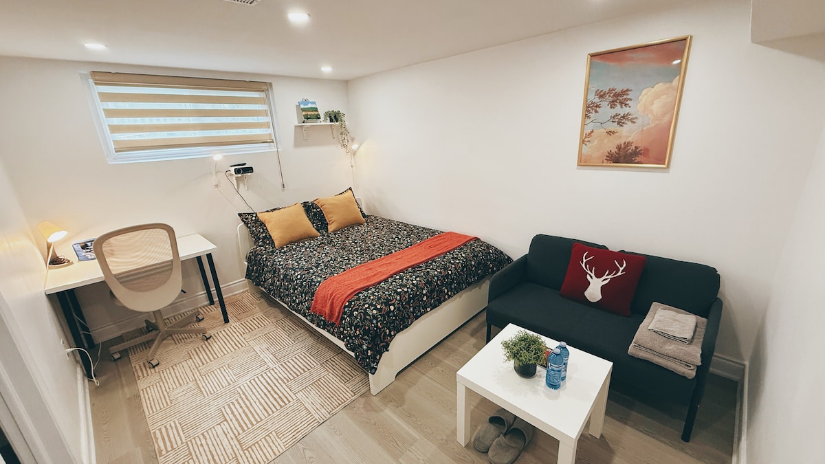 トロントのアップタウン中心部にあるバサーストマナーの改装済み1ベッドルームの地下スイートへようこそ! ビジネスやレジャーでトロントに来るカップルやおひとりさまに最適です。 バス停まで徒歩1分。 シェパード・ウェスト駅まで徒歩10分。 高速道路401号線を経由してピアソン空港まで車で12分。 ヨークデールとヨーク大学から数分 専用玄関、専用バスルーム、パスコードを使用した柔軟なセルフチェックイン時間。 公園、レストラン、ハンバー病院、ダウンズビューパークに近い