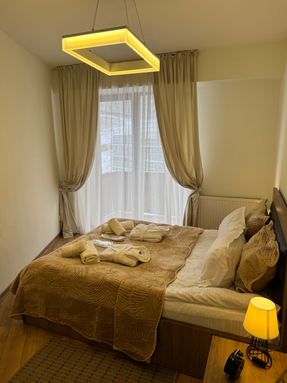 The apartment is in the newly built Atrium apart-hotel, New Gudauri, just a few meters from the gondola lift. It offers a spacious balcony with seating and stunning views of the mountains and ski tracks. This modern apartment includes a kitchen with all essential amenities. It features a private bathroom with toiletries, a seating area with a sofa and table, a smart TV, and high-speed internet. The reviews describe my place better than I ever could please take a look!