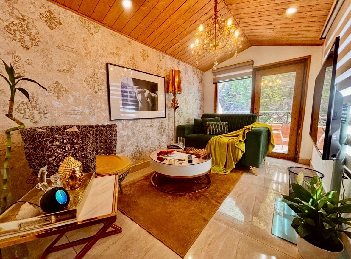 穏やかな渓谷の景色に目を覚まし、専用バルコニーで朝のチャイを楽しみ、シムラの中心部からわずか数分のところにある、静かな丘の中腹にある宿泊施設でくつろぎましょう。 2階にある、考え抜かれたデザインのこの3寝室アパートメントは、景色、快適さ、アクセスの良さが完璧に調和しており、家族連れやカップル、長期滞在に最適です。