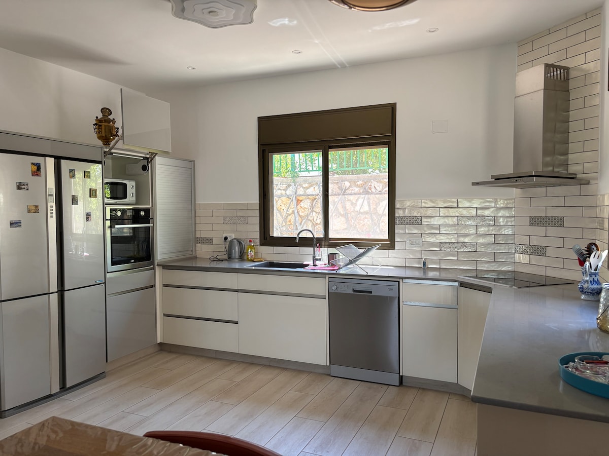 Forget your worries in this spacious and serene space. It is the upper floor of a private house with a private entrance. Very easy access from the street. Plenty of free parking. You will definitely enjoy the balcony off the living room overlooking the Galilee mountains and the northern sea shore. In the living room there is a large, 65”, TV with Netflix, Israeli channels and more. Self check in (at 3:00 pm) and checkout (at 11 am). Please let us know if you will need one or two bedrooms.