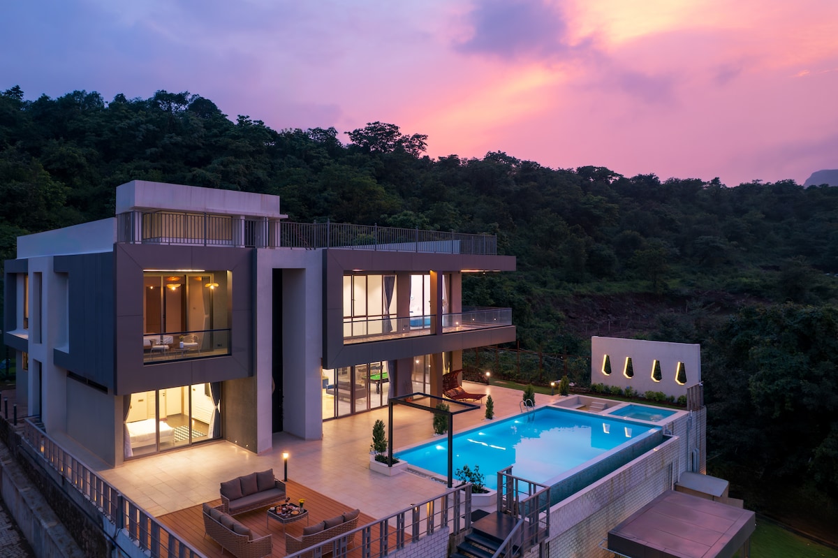 プネの静かな風景の中に位置するRidgewood Mansionは、優雅さと時代を超越した魅力を兼ね備えた印象的な石造りのファサードを誇る、素晴らしい3ベッドルームのヴィラです。内装はミニマリズムを念頭に置いて慎重にデザインされており、温かく魅力的な雰囲気を作り出す素晴らしい木製家具が特徴です。各寝室には専用バルコニーがあり、息をのむような景色を楽しむのに最適で、隅々まで贅沢さと快適さが融合しています。