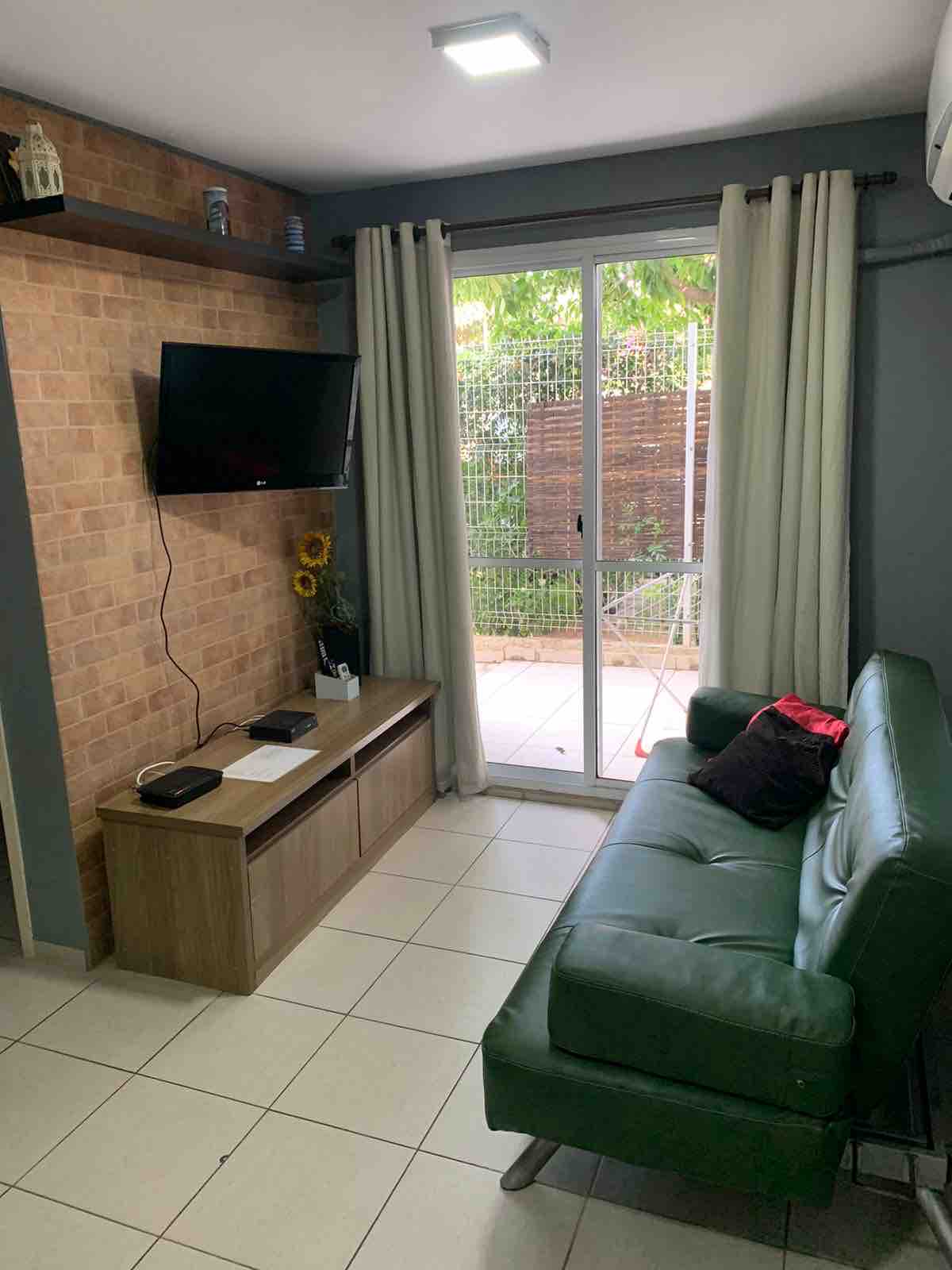 Apto Térreo, tranquilo e com segurança em um condomínio fechado. Sala de Tv, sala de jantar e a cozinha completa com fogão, geladeira , micro-ondas e outros utensílios. 2 quartos, uma de casal e uma de solteiro. Banheiro com ducha higiênica. Check-in e Check-out se for após ao meio-dia , combinar para entrega das chaves no local a ser indicado pela anfitriã