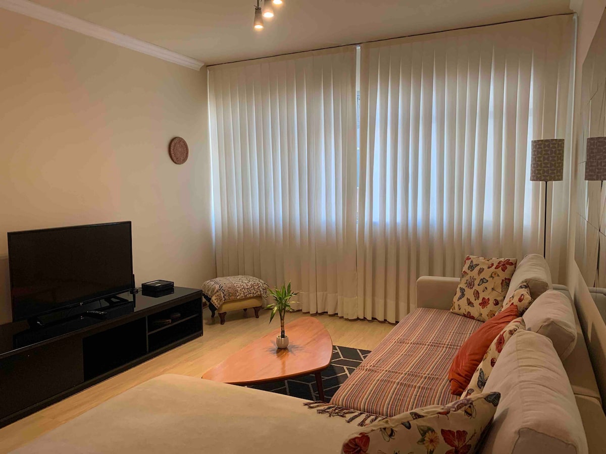 市内中心部の特権的な立地、ショッピングセンター・エスタシオン、ロドフェロビアリア、メルカド・ムニシパルに近い。 観光バスとバイアーティキュレートのチューブステーションへのアクセスが簡単です。 電子ゲート付きの建物内に無料駐車場があります。 電子ロック付きドア、スマートテレビ、アパート内WiFi。 ダブルベッド1台で2名様、補助ベッド1台で1名様がご利用いただけます。