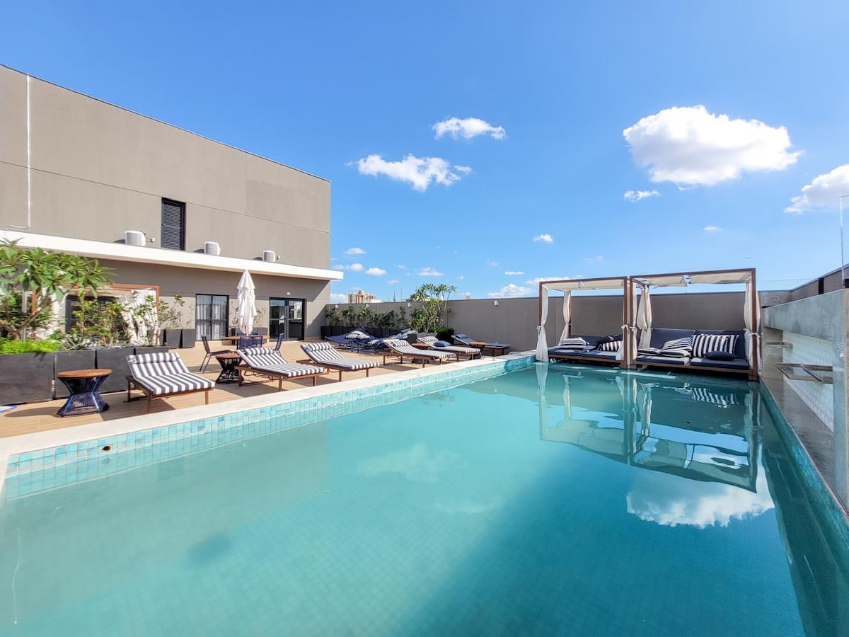 サンパウロの中心地、モエマにあるこの静かで便利な場所で実用性と暖かさをお楽しみください。 イビラプエラ公園や地下鉄モエマ駅に近く、美食、文化、レジャー、ビジネスツーリズムに最適な場所です。 設備の整ったキッチン、ベッドリネン、バスリネン、エアコン、Wi-Fiを備えた装飾されたワンルームです。 公園を見下ろす新築の建物には、プール、ジム、コワーキング、ランドリー、24時間対応のコンシェルジュがあります。