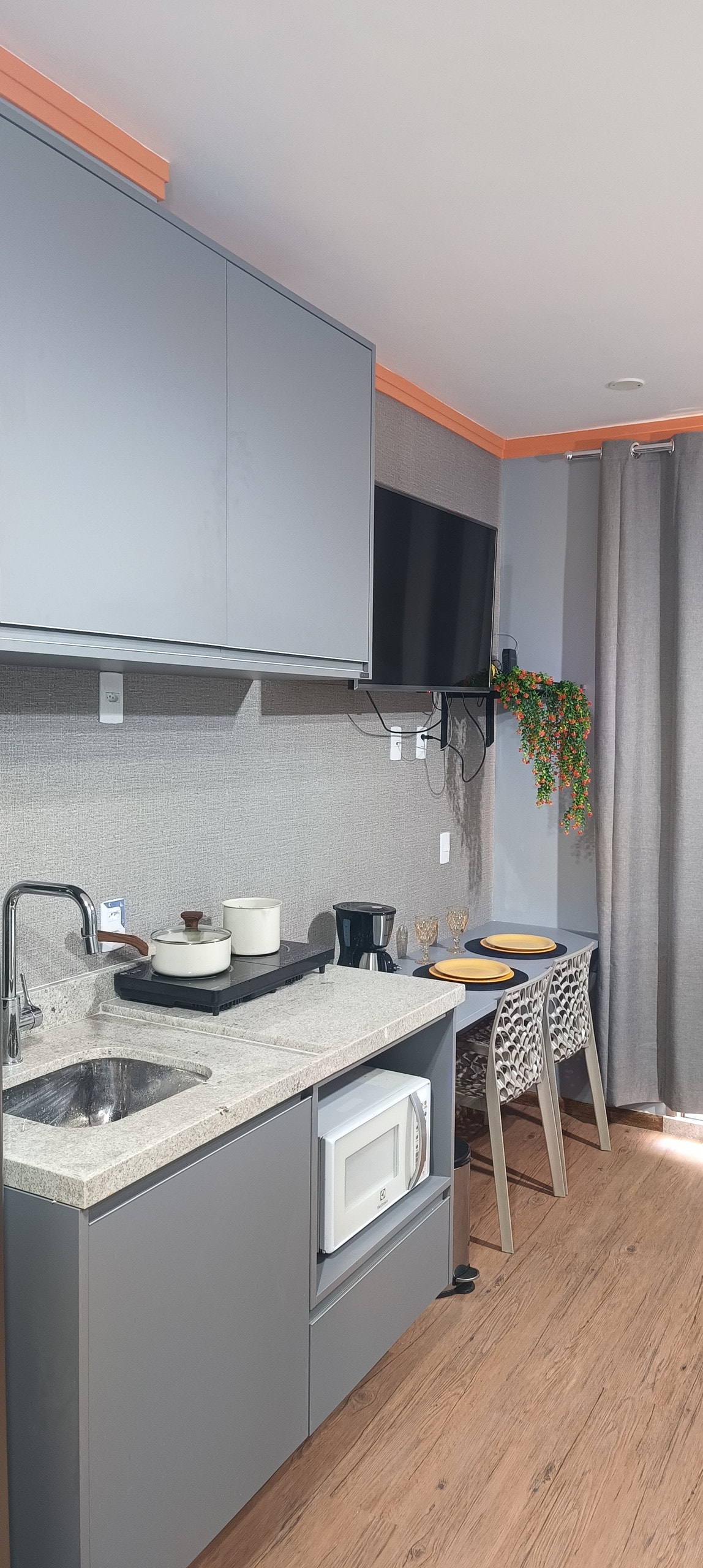 Studio novo, completo, seguro e bem localizado.