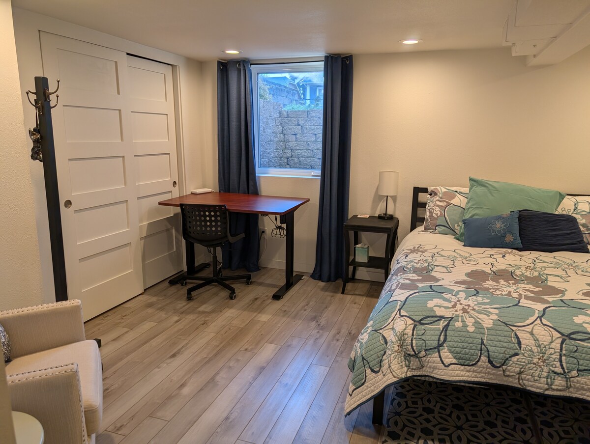 The Crow 's Nestは明るく快適なワンルームで、3/4バスルーム、シーティングエリア、ダイニングエリア、専用のケーブルテレビが備わっています。 冷蔵庫付きのミニキッチンと、長期滞在用のカウンターオーブンがあります。 専用の入り口と専用の路上駐車スペースを備えた、鍵付きの専用ワンルームです。 敷地内でランドリー設備利用可能です。 中心部に位置し、徒歩圏内に便利なバスがあり、高速道路へのアクセスも簡単です。 美しい太平洋岸北西部の居心地の良さにご参加ください。
