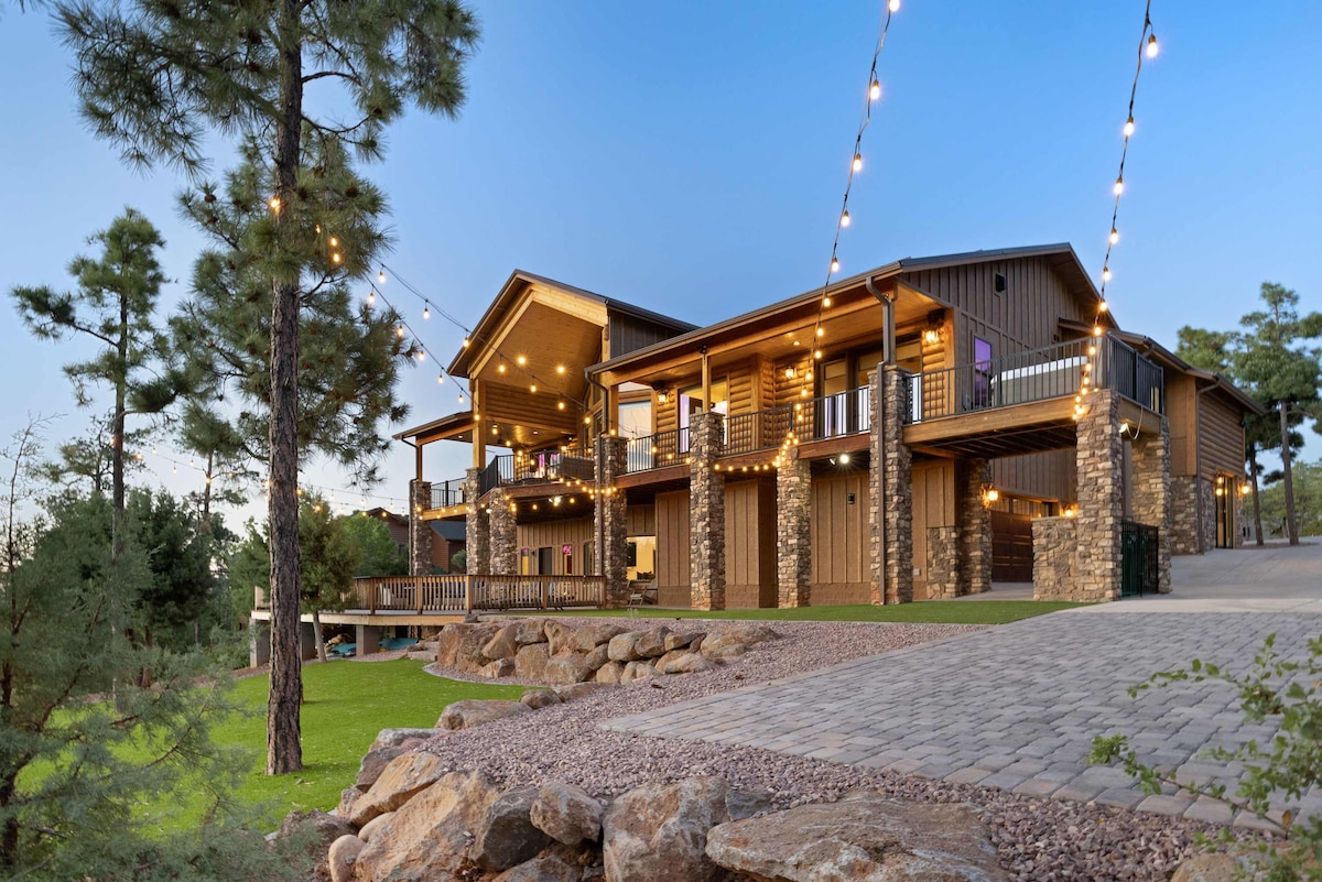 このエレガントなPinetopの隠れ家でリラックスしましょう!モダンなラグジュアリーと居心地の良い魅力が完璧に融合したこの広々としたキャビンは、ご家族や冒険家に最適です。 🏡 空間 高級家電を備えた✔グルメキッチン 究極のリラクゼーションを楽しめる✔プライベートスパ&ホットタブ ビリヤード台とアーケードゲームを備えた✔ゲームルーム 暖炉と豪華な座席を備えた居心地の✔良いリビングルーム 自然の景色を楽しめる✔屋外デッキとバーベキューエリア 🌲 ロケーション–トレイル、サンライズスキーリゾート、ゴルフ、湖の近く。今すぐ予約!