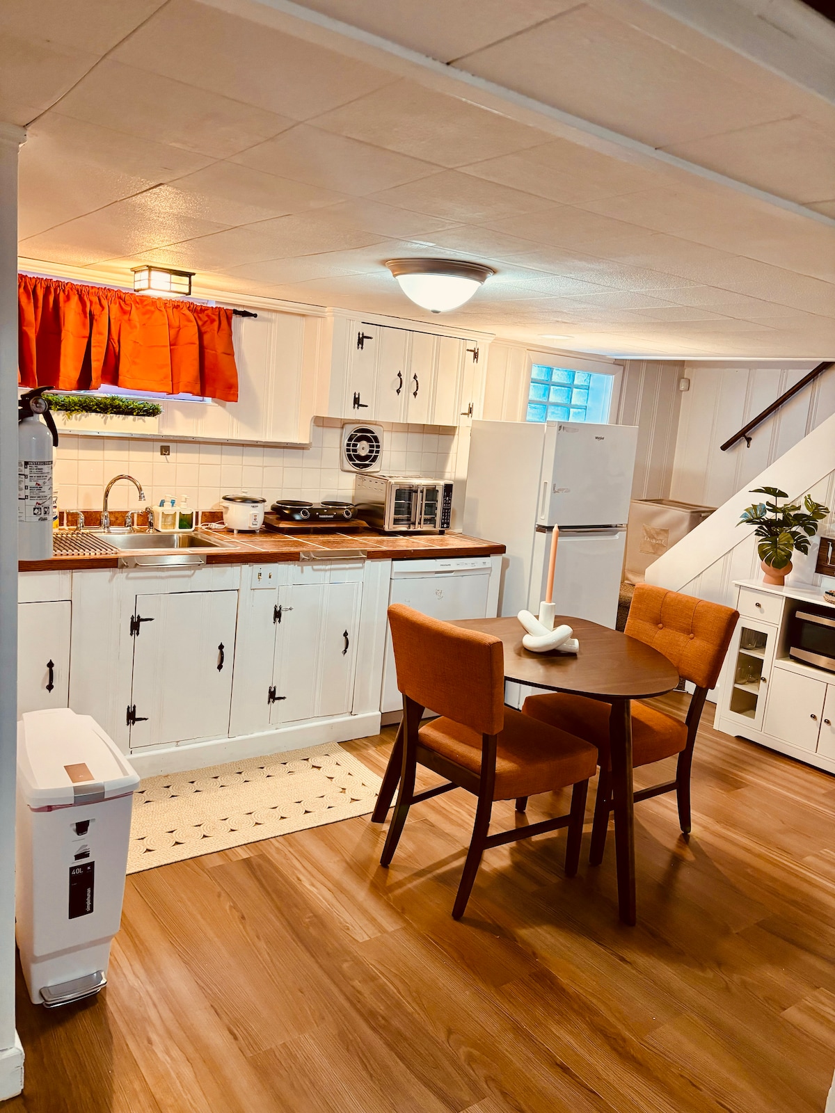 スイートでは、1回のご予約につき最大2匹のペットをお持ち込みいただけます。1匹につき50ドルです。ゲストのプライバシーは、チェックインからチェックアウトまで、専用の入り口で守られます。リビングルームには、ゲスト用のミニライブラリー、高速インターネットと無料のYouTubeTVローカルチャンネルを備えた65インチのスマートテレビがあります。スイートには、ミニ冷蔵庫、冷凍庫、電子レンジ、エアフライヤー、コーヒーメーカーを備えたミニキッチンがあります。また、必要に応じて、キャビネット用品、清掃用品、リネンクローゼット、電動ポンプエアマットレスも用意されています。