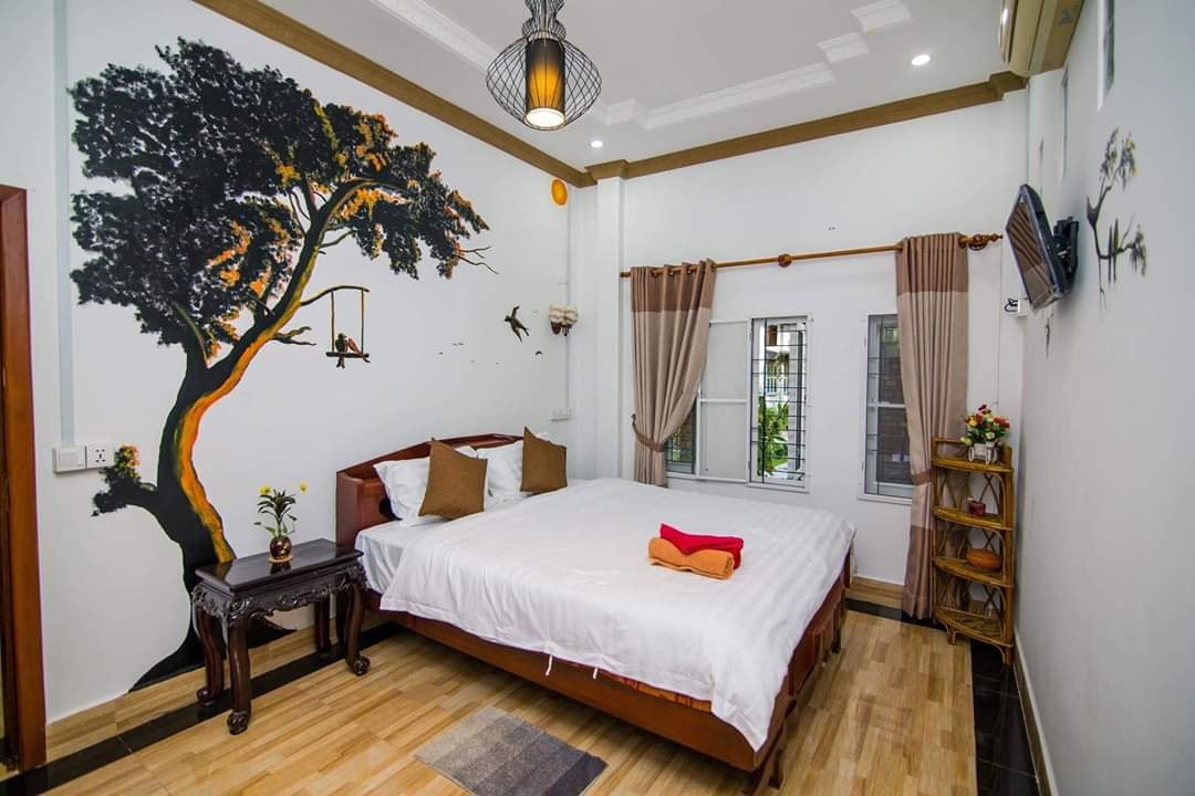 オールドマーケット、セントラルマーケット、ナイトマーケットから徒歩5分のところにあるクメール様式の物件です。 Siem Reap国際空港またはBorei Siengnumバスステーションからの無料Wi - Fiアクセスと無料の片道ピックアップサービスを提供しています。 スマイリーのゲストハウスは、王宮、国立博物館、ワット・ダムナック寺院などのアトラクションから徒歩10分以内にあります。 シエム・リープ国際空港と有名なアンコール・ワットは約8キロ、トンレ・サップは11キロです。 ありがとうございます。