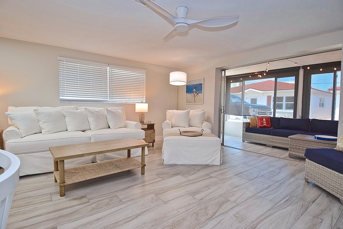 Welcome to our cute, spacious, sun filled and newly renovated Beach Villa. A Happy place for sandy feet, friends, and family. The Villa is located 1 block away from world famous Lido Beach, a 7 min walk to St Armand's Circle, and a short 3 mile drive to grocery shopping & the excitement of downtown Sarasota. The 2 bdr villa comfortably sleeps up to 6 people and features a private outdoor patio, spacious dining area, in-unit washer/dryer & dedicated parking. Come enjoy a taste of paradise!