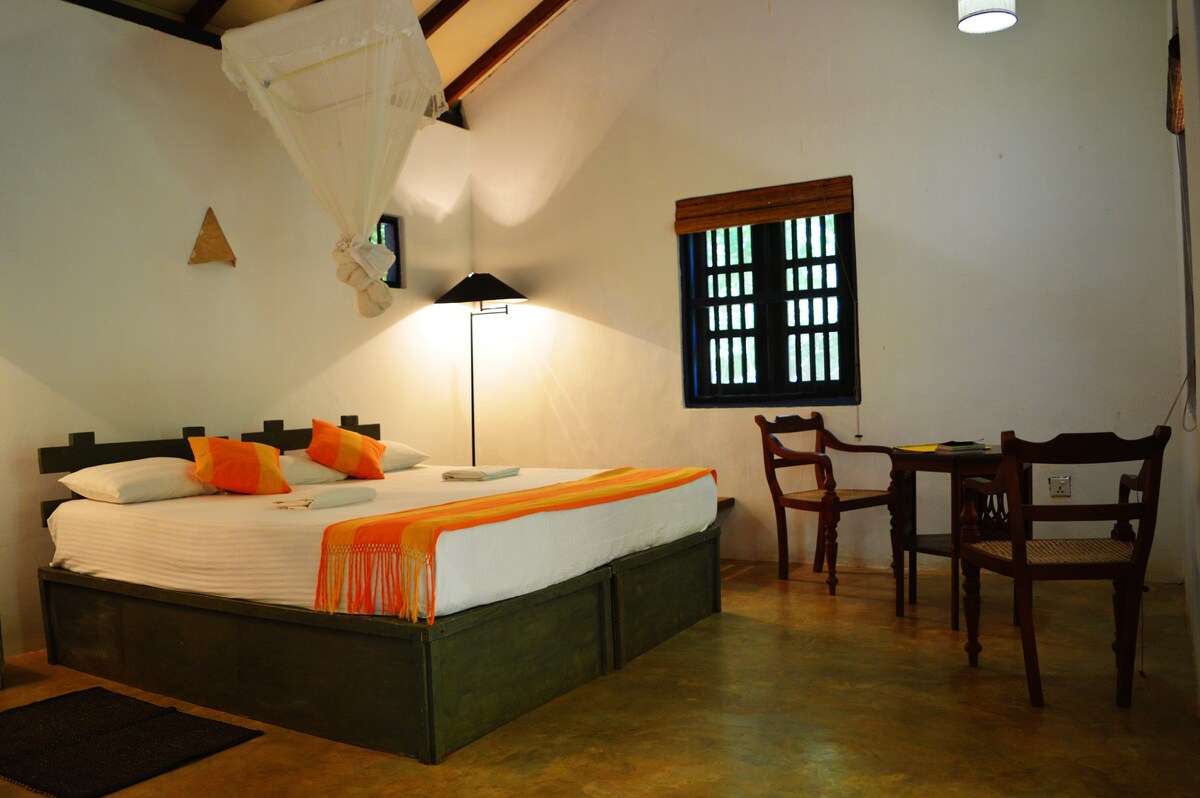 Fitted with all modern comforts including hot water showers, this cozy eco-cottage is walking distance to Sigiriya and Pidurangala rocks and is ideal for couples or small families who love spending time in nature. The cottage is part of an eco-retreat nestled in 4 acres of tropical forest full of native wildlife and many birds. Breakfast is included in the price and other meals can be ordered from our menu. We have an excellent chef who creates the most delicious local and western dishes.