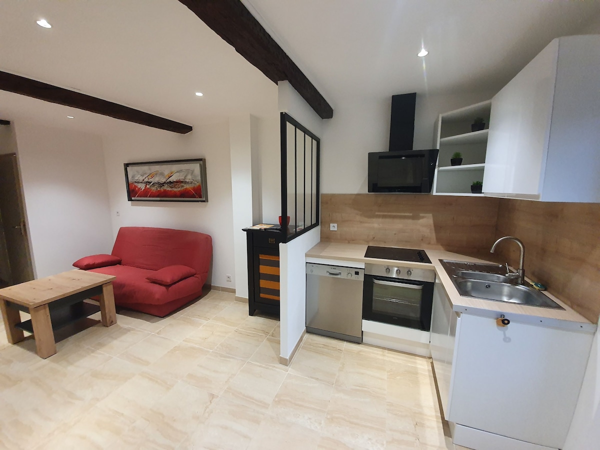 シーニュの静かな住宅街に位置する、メザニン付きの37平方メートルの魅力的なアパートメント。ポール・リカールサーキットから10分、バンドールとル・カステレ村の近く。アパートには、明るいリビングルーム、メザニン、設備の整ったキッチン(コンロ、電子レンジ、冷蔵庫、コーヒーメーカー)、160 cmのソファベッド、シャワー付きバスルームが含まれています。テラス、季節営業のプール、緑地、無料駐車場、コインランドリー。家族や友人との滞在に最適です。