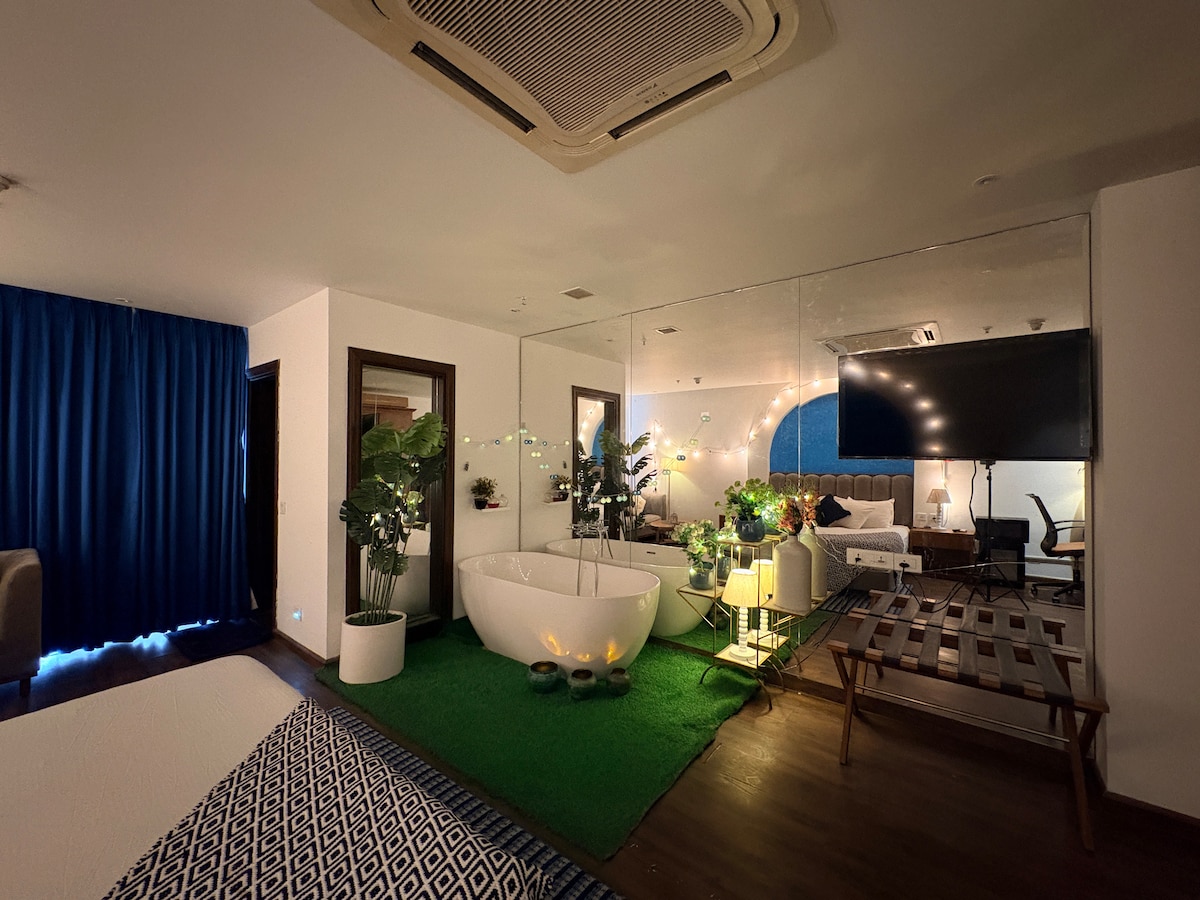 A Designer studio - your haven in humble neighborhood. With a spa-style bathroom, soft lighting, and elegant interiors, it’s perfect for couples, solo travelers, or business guests. Enjoy a plush bed, fast Wi-Fi, smart TV, and a sleek kitchenette. Whether you’re working remotely, creating content, or simply unwinding, this space offers boutique-style comfort with local charm—at a refreshingly affordable price. A hidden gem for those who value beauty and simplicity, in the heart of the city.