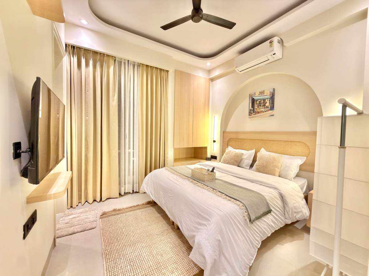 Welcome to The Calm Shore — a fully equipped 1BHK with all amenities for comfortable short & long stays. Centrally located in the corporate hub of Gurgaon - just 1 km from Golf Course Rd & 2 km from Cyber City. Easy access to IGI airport. ✨Why us: • Full Amenities: Equipped kitchen, tea/coffee essentials, complimentary access to OTT platforms - Netflix & Prime Video, games & books • Private Garden Balcony. • Comfy & Versatile Bedroom • Work-Friendly: High-speed Wi-Fi & dedicated work desk.