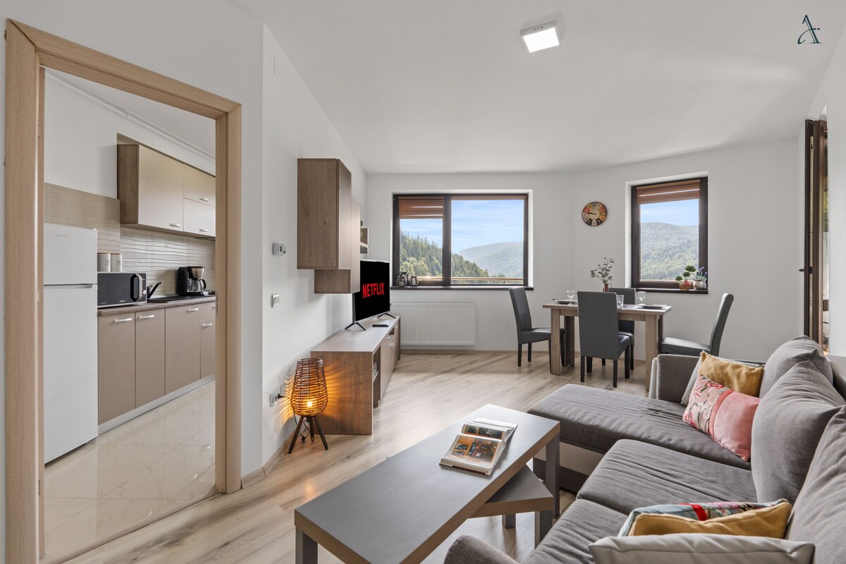 魅力的な山の町シナイア(Sinaia)に位置するこの快適な1ベッドルームのアパートは、快適さと便利さを求めるカップル、小家族、出張者に最適な隠れ家です。<br><br>アパートには、快適なダブルベッドと追加のダブルソファベッドを備えた、考え抜かれたリビングスペースがあり、最大4名のゲストを簡単に収容できます。