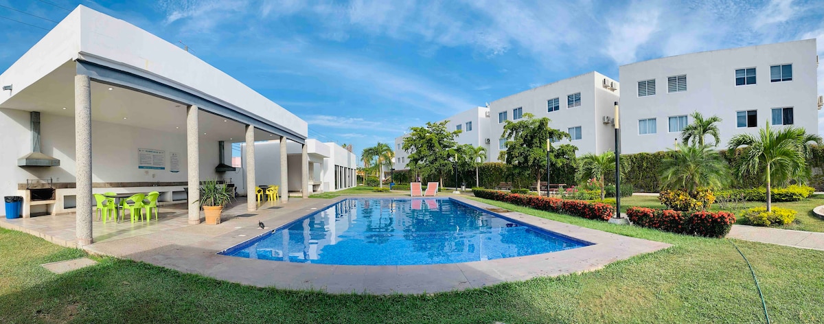 この美しく、中心部に位置し、広々としたアパートで、忘れられない休暇をお楽しみください。静かなエリアにあり、24時間警備があります。セントラルパーク、野球スタジアム、水族館から3分、ビーチから2ブロック、OXXOが向かいにあり、コンビニや銀行から3分です。 プール、ジャグジー、映画館、ジム、テーブルテンニス、卓球を楽しむための優れた設備。