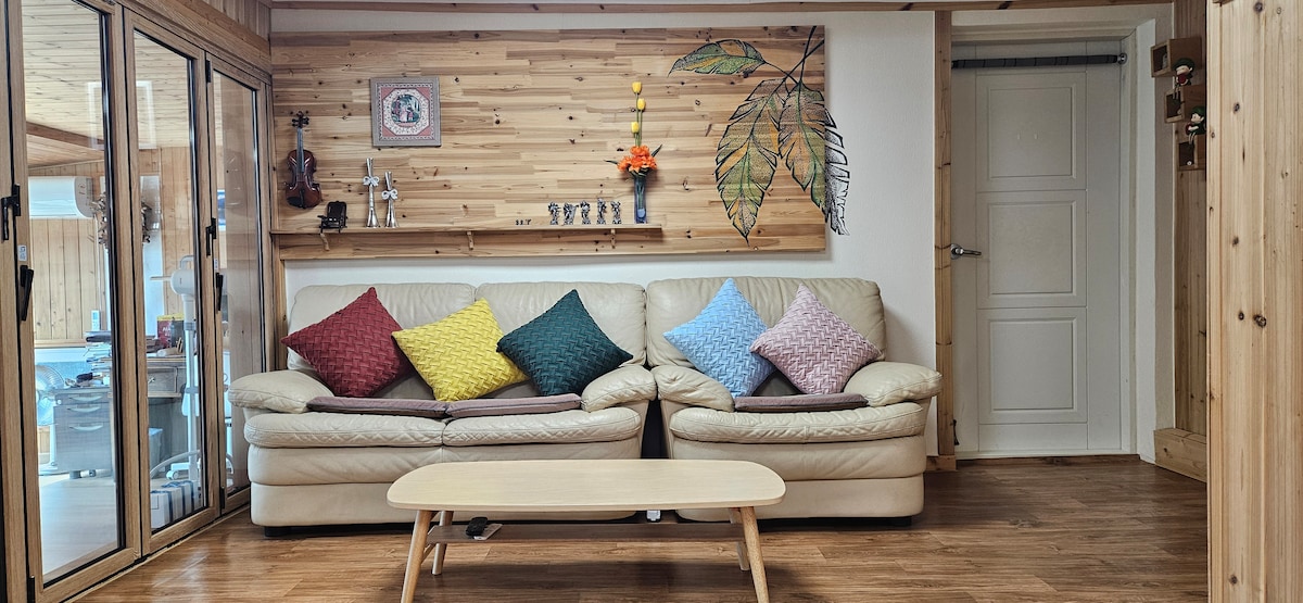 ★ ダブルベッド2台、補助ベッド1台、シャワールームとトイレを備えた広々とした空間で、恋人/家族旅行にぴったりです。(標準2名/最大6名、2名を超える場合は1名につき2万) ★ ブラウンハウスには純種のチンドッグ、バックグーと一緒にいます^^ 立地:陣戸町から陣戸港(旧パングモク港)方面へ約10kmです。 ★ バーベキュー設備使用料(₩20,000/2人、₩25,000/3~4人、₩30,000/5~6人) - 炭、着火用ブタン、トング、フロントプレート、木製スプーンなどの基本設備を提供(おいしい食べ物だけ持参してください^^) ★ 火鉢+薪10kg(₩20,000) ★ 事前予約でスパをご利用いただけます(₩ 40,000/1泊) ★ 事前予約で専用の屋外プールをご利用いただけます(₩ 50,000/1泊)*水は毎日交換します。 ★ 犬の追加料金(1泊20,000ウォン/1匹)*無料で利用できる犬の遊び場があります。