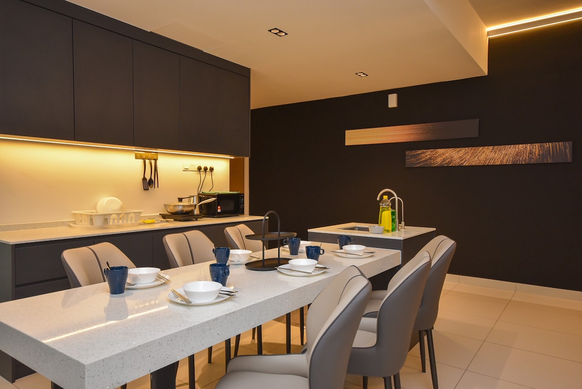 Private Luxury Suite | Walk to KSL Mall • Walking distance to KSL Mall • Cyberpunk-inspired futuristic design • Private Jacuzzi for relaxation • Immersive cinema experience with surround sound • King-size bed with 12-inch premium mattress • Pull-out sofa bed Boldly designed with neon accents and futuristic details, this suite blends comfort with a striking cyberpunk atmosphere. Perfect for couples, small business teams, or small families and memorable stay in the heart of Johor Bahru.