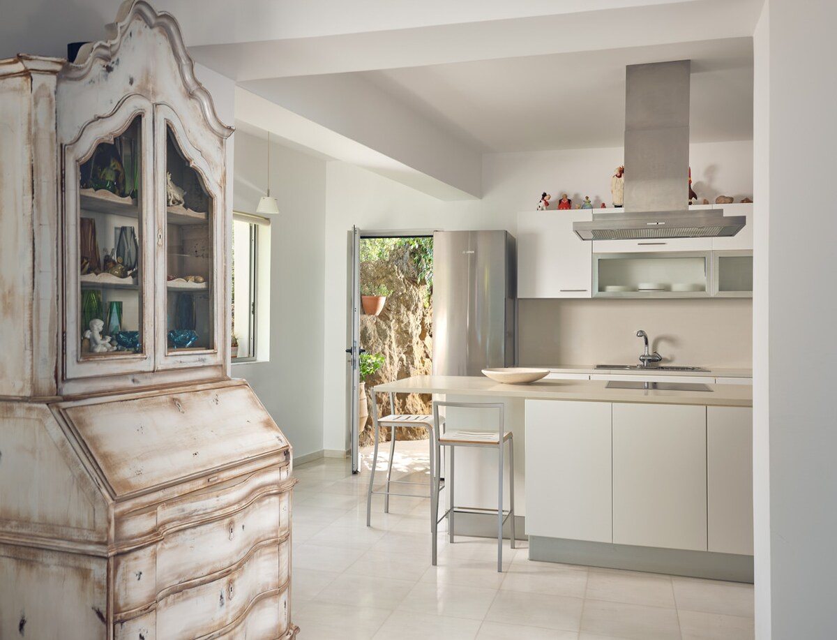 Zauberhaftes Zuhause inmitten der Natur , 15 Gehminuten vom Strand entfernt – mit exklusiver Panoramaterasse . Hier treffen Moderne und Naturverbundenheit zusammen. Wunderschön gelegen in einem Berghang mit Olivenbäumen auf einem großzügigen eigenen Grundstück mit Garten. Die Unterkunft ist ideal wenn Sie Ruhe suchen und einen einzigartigen Panoramablick aufs Meer wünschen. Die Unterkunft bietet eine moderne Ausstattung mit allem modernen Komfort - jetzt auch mit Außendusche