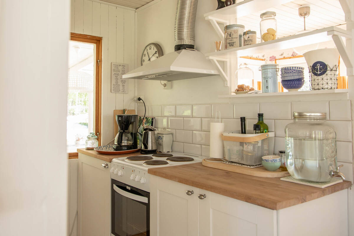 Nybyggd stuga på 30 kvm. 5 minuters promenad från hamnen. - Öppen planlösning med kök och vardagsrum i ett. - Sovloft med 2 enkelsängar. - Vardagsrummet har en Bäddsoffa. - Köket har induktionshäll och ugn. - Helkaklat badrum med toalett, dusch och tvättmaskin. - Stor altan runt huset med matplats. - Utsikten består av tall och blåbärsskog - Städning ingår ej. - Husdjur ej tillåtet - Gäster har med sig egna sängkläder och handdukar (kan hyras för 150 kr per person)