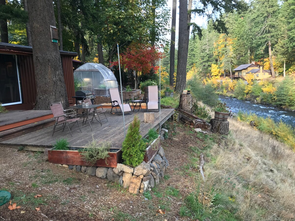 町からわずか数分のホワイトサーモン川の上にある、小さく居心地の良いキャビンです。 プライベートな小さな森のオアシスから広大な180度の景色を楽しんだり、中心部に位置していることを利用してゴージュのすべてを探索したりできます。 このプライベートな隠れ家は最近改装され、訪問する友人や家族が快適に過ごせるようになりました。 この隠れ家的な小さな宝石をみなさんと共有できることを楽しみにしています。素晴らしいご滞在になりますように願っています!Heather & Eli