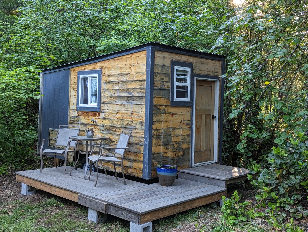 Tree Fortは、MilePost5のフォレストビュー側にある「小さな」タイニーハウスです。 キャンプの人里離れた場所にあり、リリーパッドとリトルディッパーの近くにあり、キャンプ内の他のトレーラーとコンポストトイレと雨水シャワーを共有しています。 この地域の自然の美しさに溶け込むように、すべて木材で仕上げられています。 MilePost5での次のご滞在で「Tree Fort」をお楽しみいただけることを楽しみにしております。