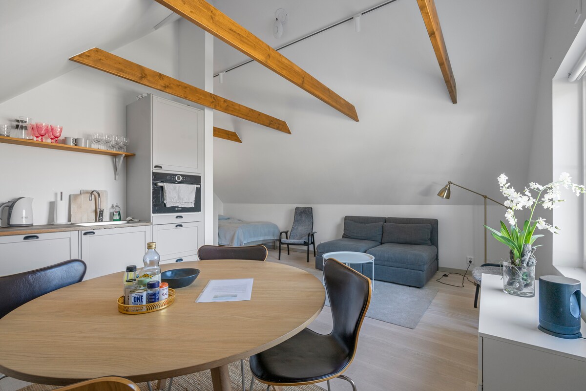 A complete 30 sqm house just for you. In the house you will find your own sauna, a big bathroom with shower, a living room with kitchen including stove & fridge plus freezer and a loft with a king size double bed. The couch folds out to a queen size bed. The guest house is right next to our main house but has its very own patio for some privacy. Parking is easy accessible and is is of course included. We are usually close by if you have any questions or want tips regarding the surroundings.