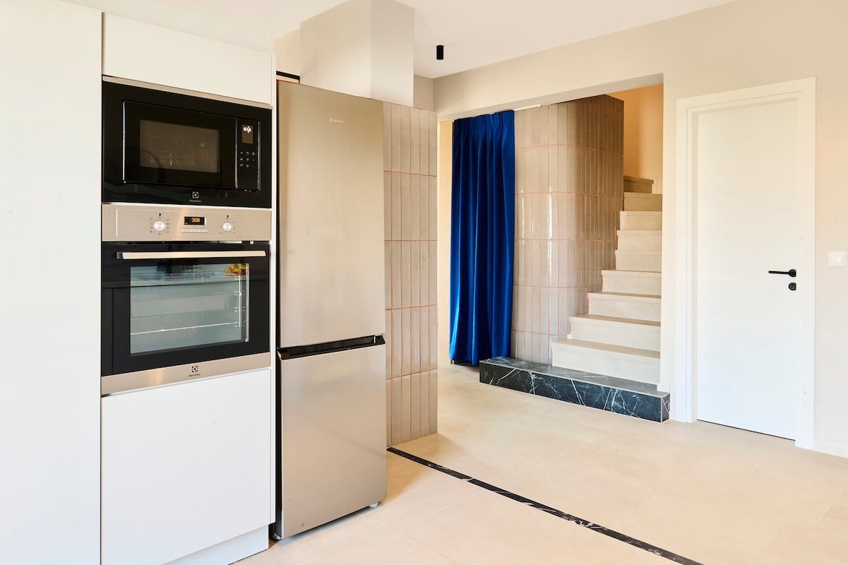 大きなアパートは約100平方メートルあり、独立したベッドルームが2つとリビングルームに大きなソファがあり、5名様が快適にご宿泊いただけます。 設備の整ったキッチン内で、ダイニングルームまたは素晴らしいベランダでお食事をお楽しみいただけます。