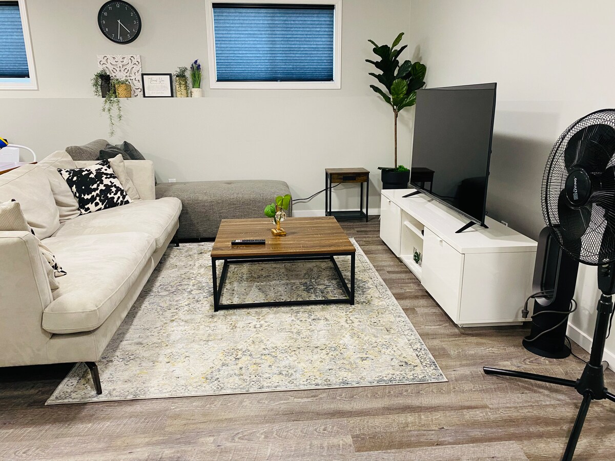 このスタイリッシュな宿泊先は、出張中に居心地の良い家のような雰囲気を味わうのに最適です。 2階にはキングサイズベッドと専用バスルームを備えたマスターベッドルーム1室と、クイーンサイズベッドを備えた2つ目のベッドルームがあります。 キッチンには食器/カトラリー、鍋、フライパン、ミキサー、電子レンジ、冷蔵庫、キッチンテーブル、ガス暖炉付きの居心地の良いリビングがあります。衛星放送、Netflix、Disney +、NHLパッケージ。地下にはランドリールームがあり、クイーンサイズベッドを備えた寝室2室、リビングルーム、バスルーム、ランドリールームがあります。