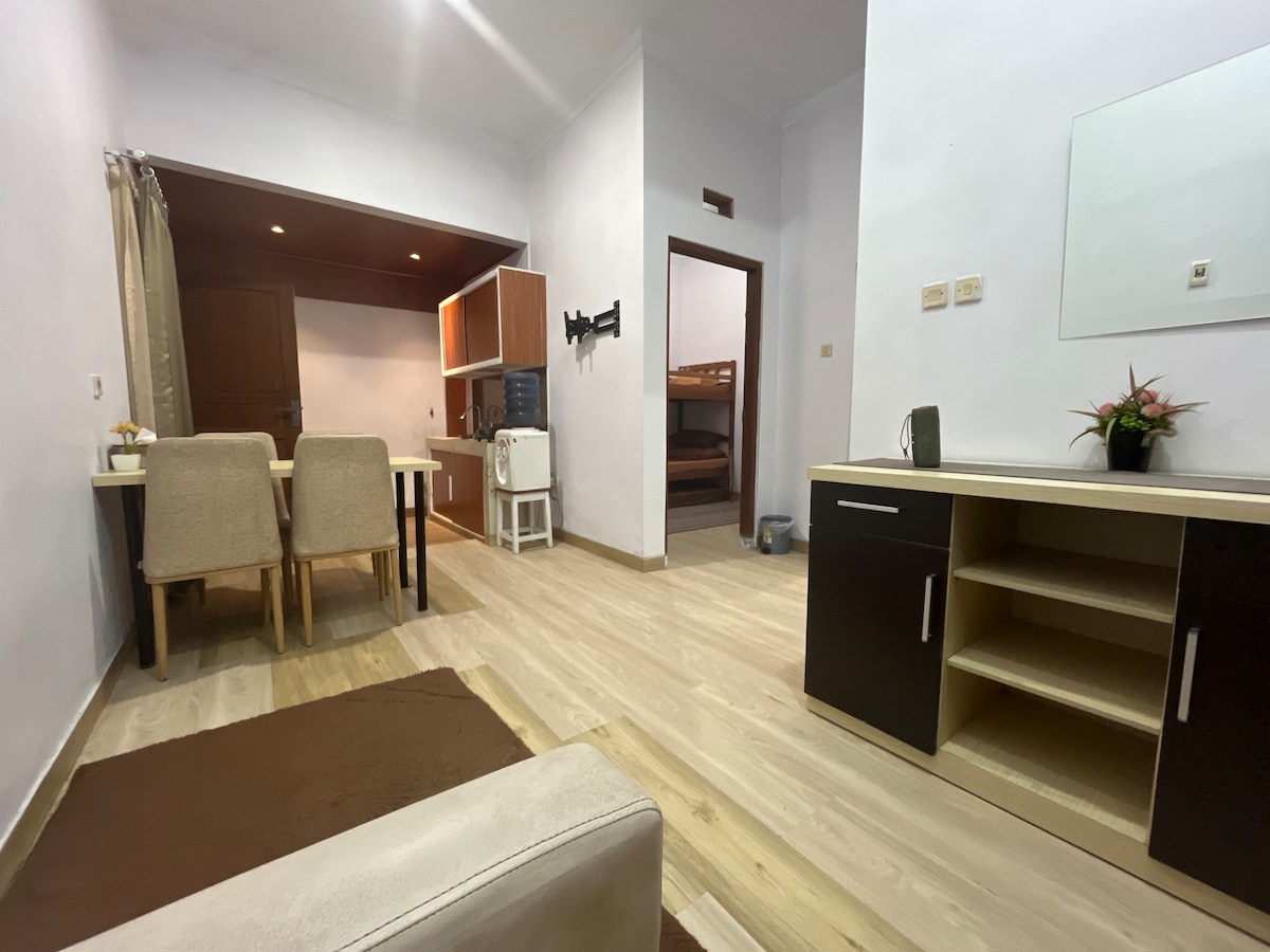 UNA Homestay Malioboroは、ジョグジャの中心部にある清潔でミニマリストな住居です。マリオボロまでわずか5分、グルメ、ショッピング、観光スポットに近い。 寝室2部屋とリビングルーム、すべてエアコン完備。キッチンはすぐに使える状態で、バスルームは清潔で、スマートテレビはYouTubeとNetflixを視聴できます。 家族、友人、またはビジネスゲストに最適です。高速Wi-Fiと駐車場があります(ガレージは小型/中型車に適しています)。 静かで戦略的な環境:マリオボロ、トゥグ駅、クラトン、ベリンガルジョ市場の近く。ホストはフレンドリーで歓迎します。