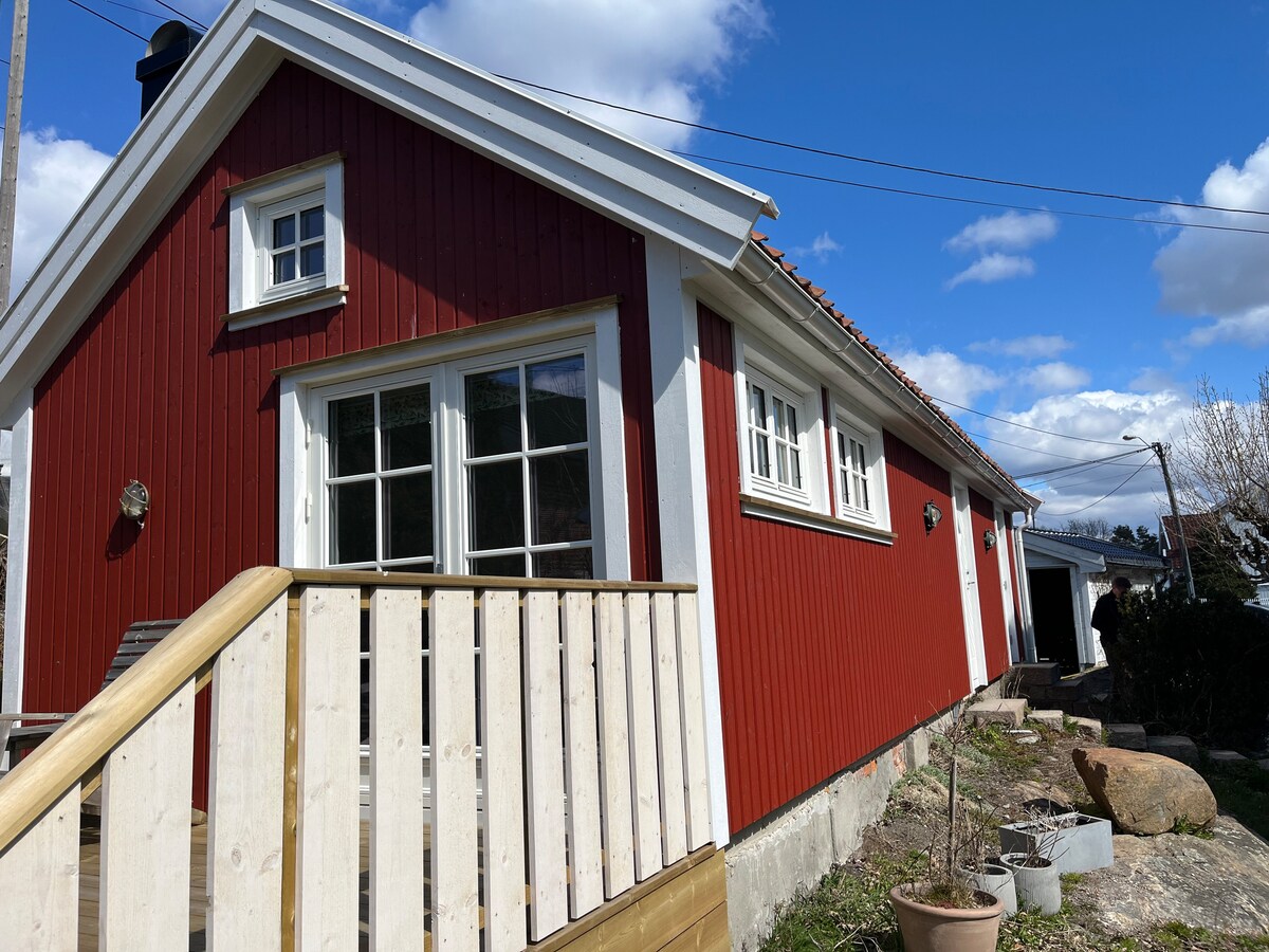 静かで美しい環境にあるのどかな家で、素敵なハイキングエリアやビーチに近いです。 窓から海が見え、素敵なパティオがあります フレドリクスタッドの中心街まで5.5km、自転車で約20分。 家から800メートルのところにフェリーレンタルもあり、1時間に3回Kråkerøy、Sentrum、Old Townに行くことができる無料フェリーがあります。 家から徒歩約10分。Ålekilen