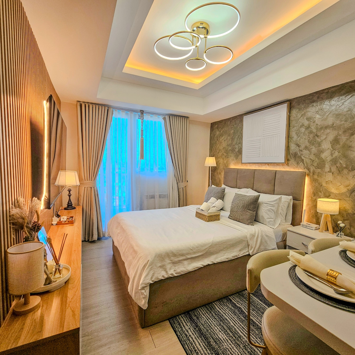 Escape to a modern romantic retreat at Azure North Pampanga. This stylish unit features a spacious balcony with stunning pool and city views, perfect for your wine nights or morning coffee. Enjoy cozy interiors, ambient lighting, and a serene vibe ideal for couples, families or solo unwinders. Located in a premium building with resort-style amenities. Your dreamy staycation starts here.