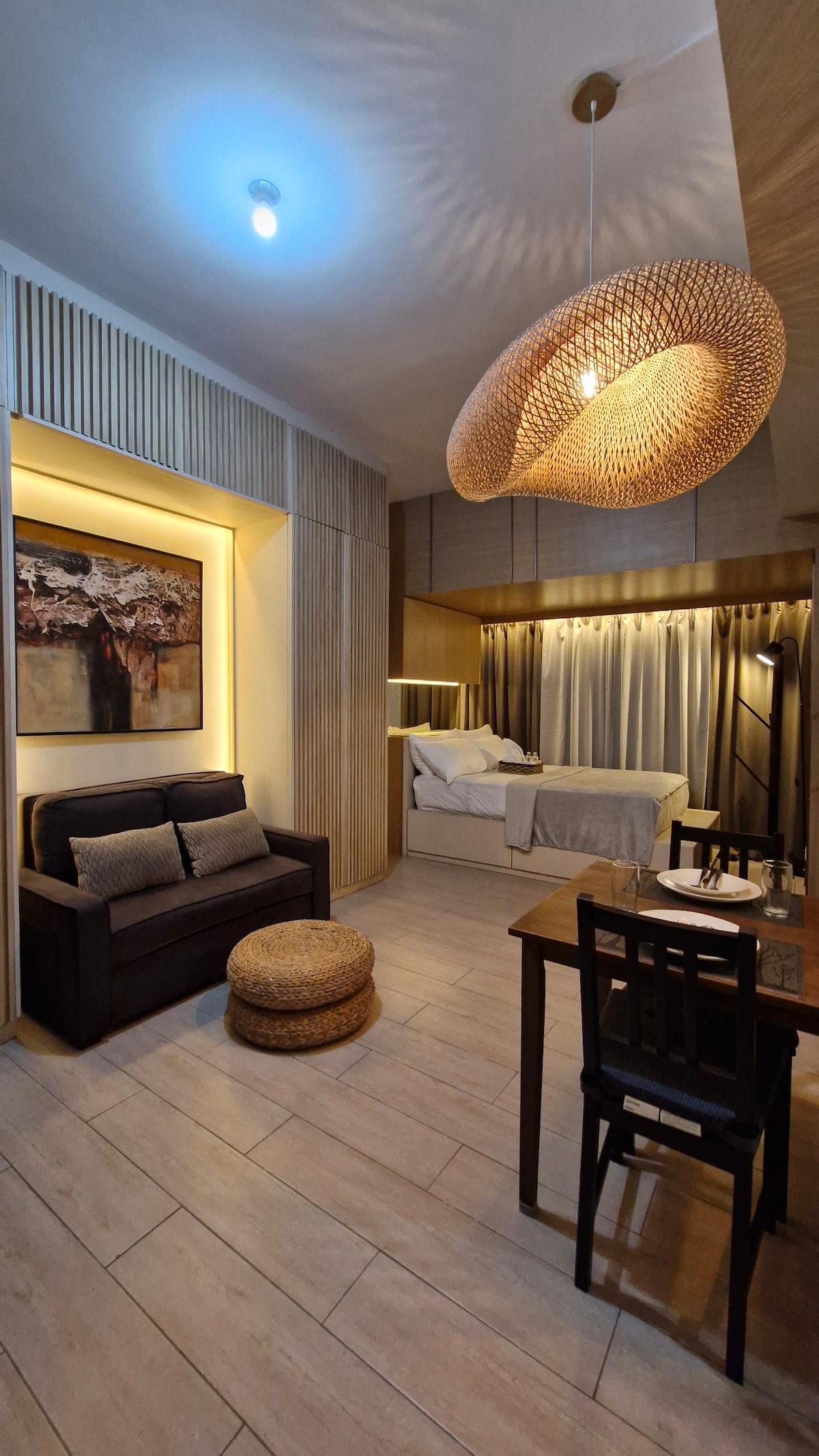 Step into your own little escape at Air Residences Makati 🏙️ a Bauhaus-inspired studio where clean lines, bold details, and cozy comfort meet city life. Wake up to dreamy skyline views 🌆, sip your morning coffee by the window ☕, work comfortably during the day 💻, then unwind at night with Netflix under soft ambient lights ✨. Minimal yet warm. Stylish yet cozy. Perfect for staycations, work-from-home, or quick Makati getaways this is your space to relax, reset, and enjoy the city in style 💫