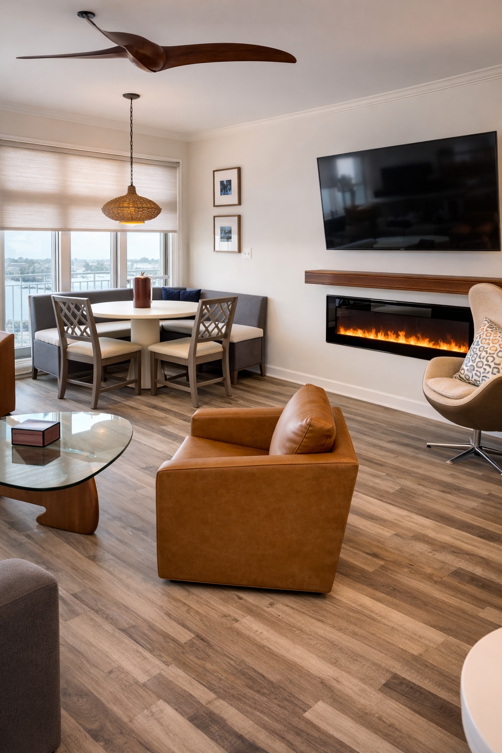 Welcome to Your Luxurious Getaway, and indulge in a serene retreat at our upscale 2-BR, 2-BA condo, perfectly designed for comfort and sophistication. Nestled within a premier community, this condo offers a harmonious blend of modern amenities and breathtaking natural beauty, ideal for couples, families, or business travelers. Relax by the cozy gas log fireplace while streaming your favorite shows on the smart TV w/ Wi-Fi. Fully equipped kitchen for your culinary needs, and stylish finishes.