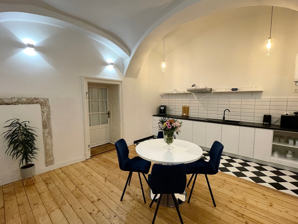 西タトラ山脈の美しい景色を望む、屋根窓のバルコニー付き33平方メートルのシェルターハウススタジオ。広々とした4メートルのインテリアは、マツの木で仕上げられています。180x200cmの「キングサイズ」ベッドは、2つのシングルベッドに分けることができます。食器洗い機、冷蔵庫、電子レンジ、トースター、コーヒーメーカーを備えたキッチン。100cm幅の折りたたみ式ソファチェアにより、2人または子供連れの2人でも快適に過ごせます。オープンスペースのバスタブ、別室の洗面台付きトイレ。
