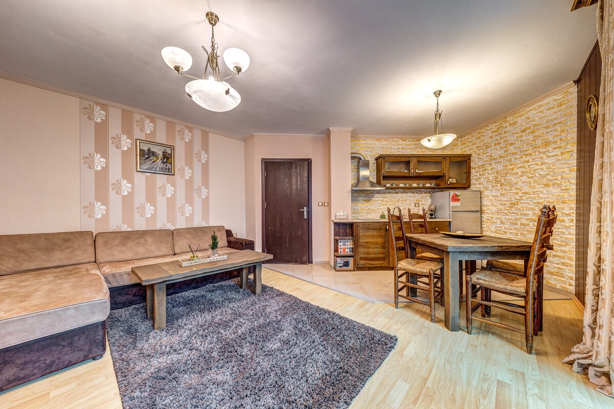 日常生活から離れて、豪華な複合施設「Castle」- Pamporovoにある設備の整ったワンルームの素晴らしい雰囲気、居心地の良さ、静けさに浸りましょう。 スキーや山岳ハイキングがお好きな方にはぴったりの場所です。 この複合施設はストゥデネツから300mのところにあり、スキー場のゲレンデ7番がすぐそばを通っています。 絵のように美しい自然、松林、スネジャンカ山頂の景色がアパートをユニークなものにし、忘れられない滞在にしてくれます。