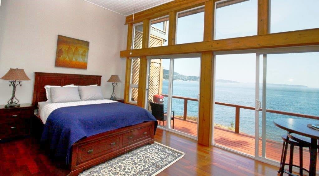 真のウォーターフロント – ビーチに面しています!西向きのオーシャンフロントのこの家は、1939年のオリジナルの魅力の一部を維持しながら、全面改装されています。 アーチ型の天井のあるこの明るくて居心地の良いコテージからは、海が見え、海の音が聞こえ、頭上を舞うワシを見たり、アザラシ、カワウソ、サギを見たりできます。 デイビスベイのお店でコーヒーを飲みに行きましょう。徒歩2分です。夜は素晴らしい夕日をお楽しみください。サンシャインコーストハイウェイにあり、アメニティに簡単にアクセスできます。 シーシェルトまで車でわずか4分です。