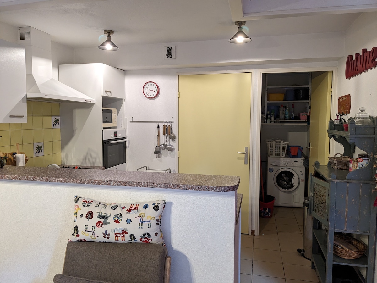 小さな共同所有の住宅地にある山小屋風の家。専用テラスと囲まれた庭。大きな階段がある2階建ての家。 1階:設備の整ったアメリカンキッチン付きリビングルーム。バスルーム2室とトイレ2室。 2階:寝室2室、5人用の寝室として使用できる広い廊下。 家の前に2台分の専用駐車場 バニェール・ド・リュションから2 km、スーパーバニェールスキー場へは2 kmのケーブルカーでアクセスできます。 WIFI +テレビデコーダー