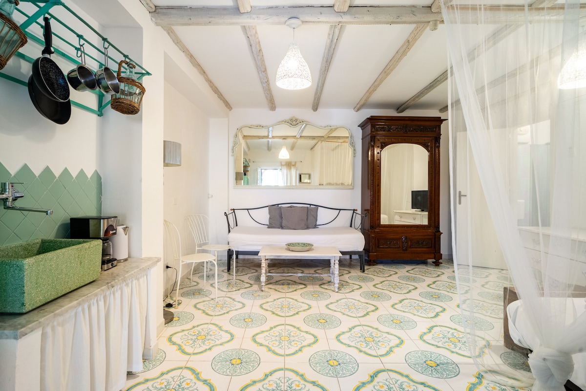 Un'antica casa di pescatori in riva al mare, divisa in piccoli appartamenti con lo charme dello stile mediterraneo a soli 3 metri dalla spiaggia. Il monolocale Suttasali, si trova al pian terreno, e la veranda giardino si affaccia sul patio comune della casa da cui si accede direttamente alla spiaggia. La bellissima cucina esterna, nel giardino di erbe aromatiche, è in parte realizzata con il recupero di legni che durante l'inverno il mare deposita sulla spiaggia..: una casa made in Sicily!!