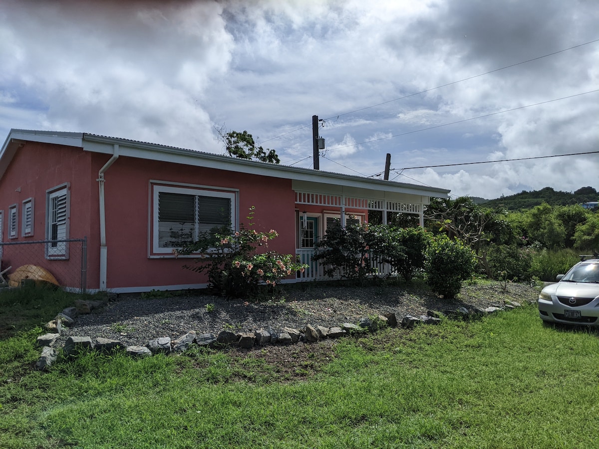 こちらの落ち着いた宿泊先で、ご家族一緒におくつろぎください。 2つの寝室と2つのフルバスルーム、そして隠しベッドソファー付きのプライベートなお部屋です。 裏庭にはフェンスがあり、パティオと屋外ダイニングエリアは熱帯植物に囲まれています。 窓を開けてすべての部屋からカリブの風を楽しむことができます。暑くなりすぎた場合は、寝室とリビングエリアにエアコンがあります。 広々とした玄関先のポーチからは丘の景色が見えます。 年齢を問わず家族全員とお気に入りの犬を集めて、この安全で安心な島の休暇をお楽しみください。