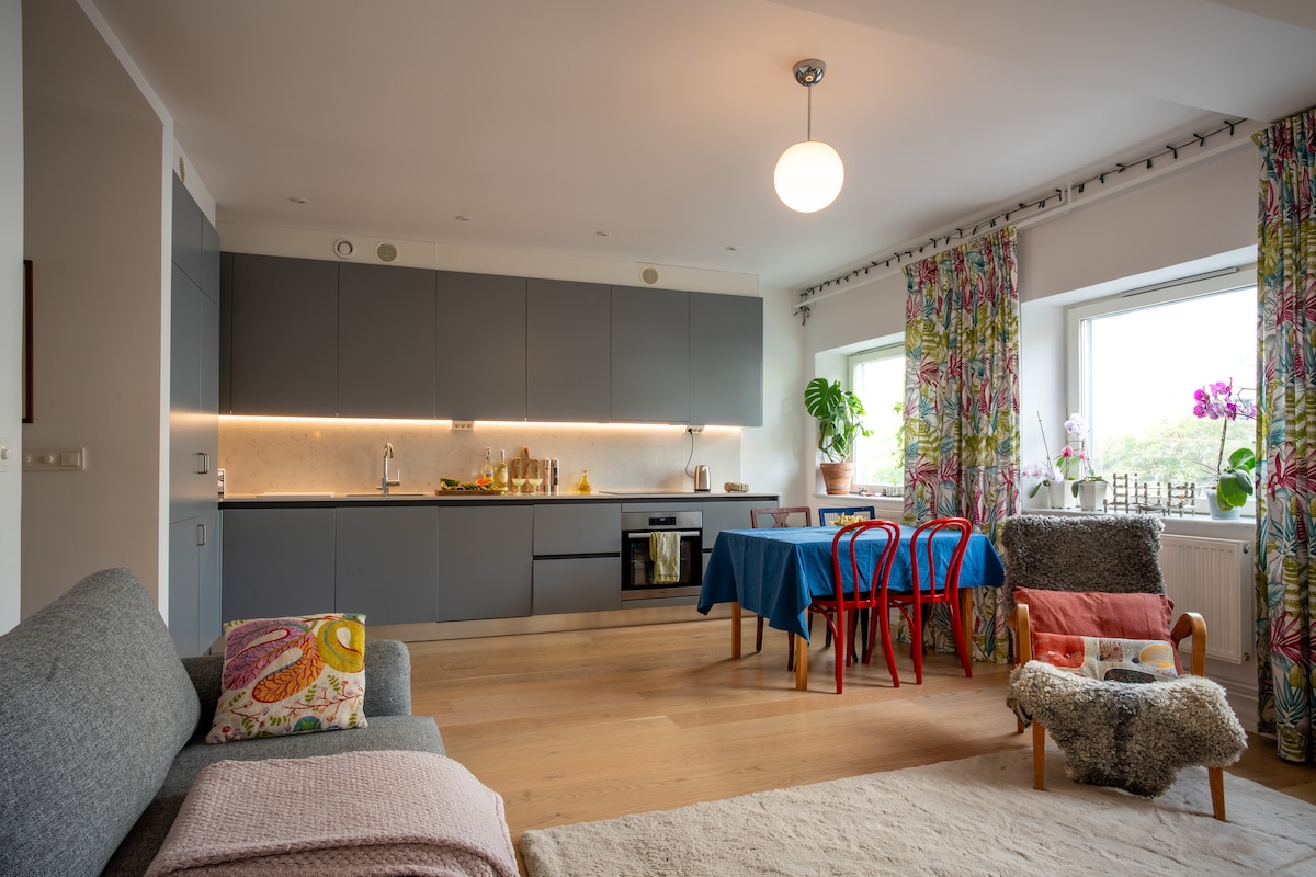 新しく明るくモダンな家具が備わった100平方メートル。 アパートはショッピングやさまざまなレストランやパブの近くです。 アパートは明るく、モダンなデザインのホテル風のインテリアになっています。 アパートは、おひとり様、ご家族、または2名様でのご旅行に最適です。 アパートには無料Wi-Fi、快適な幅160cmのベッド2台、素敵なシーティングエリア、設備の整ったキッチンがあります。 アパートは明るく新しく改装されており、ストックホルムでの週末以上の滞在に最適です。