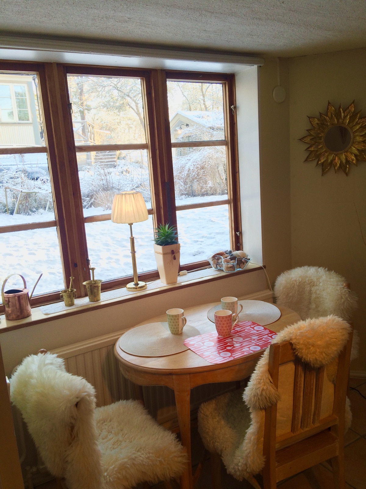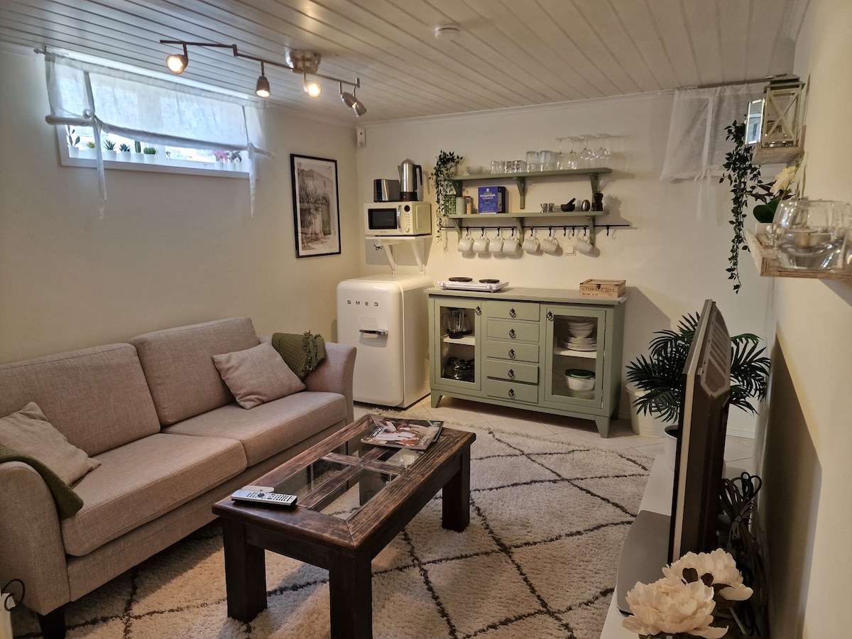 このユニークな家はソルナの中心部に位置し、1929年に建てられた3つのアパートで構成されています。 この家は、たくさんの花とコーヒーを飲んだり、バーベキューディナーを手配したり、夜のワインを飲んだりするのに最適な場所がある緑豊かな庭園に囲まれています。 アパートには庭からの専用玄関があり、新しく改装され、良好な状態です。 キッチンには食器洗い機と洗濯機/乾燥機の両方を備えた2人用の設備が完備されています。 Wi - FiとCanal - Digitalを備えたテレビが含まれています。 敷地内に無料の駐車スペースがあります。