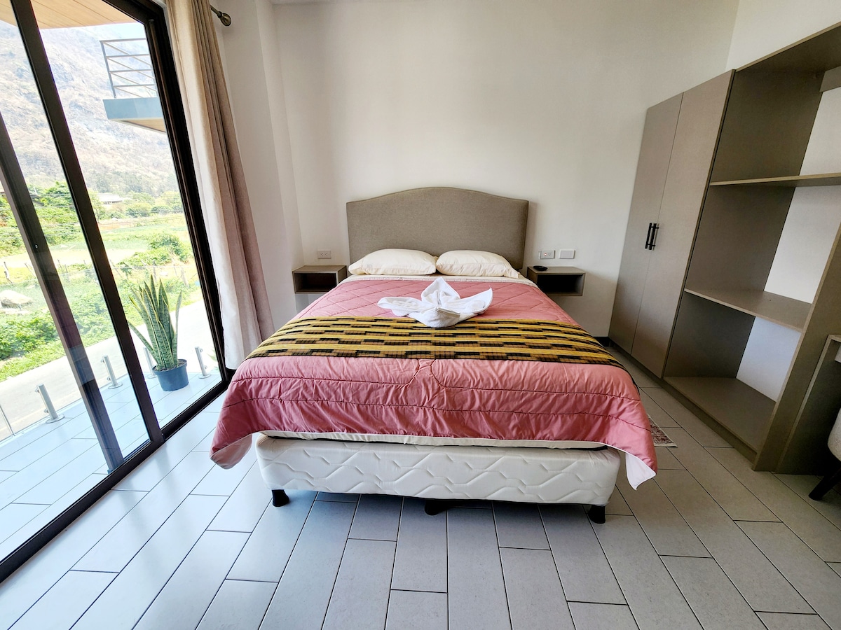 手作りのキングサイズベッドを備えた、居心地の良い高級感のある専用バスルームでリラックスしましょう。アティトラン湖、緑豊かな庭園、雄大な山々の素晴らしい景色を眺めながら、究極のリラクゼーションを楽しめる静かな安息地をお楽しみください。お部屋の目の前にある共用の高台の屋外キッチンで食事をお楽しみください。壮大な景色を楽しむのに最適な環境です。静かなプール、スパ、湖のドックへと続く景色の良い庭園の小道を専用でご利用いただけるため、思い出に残る滞在となるでしょう。
