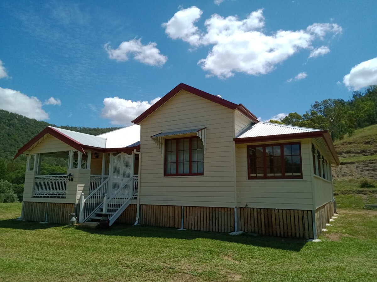 デイボロからわずか10分の場所にある、美しく修復された1920年代のクイーンズランドのファームハウスで、レイシーズ・クリーク渓谷の比類のない景色を楽しめます。 110エーカーの実際に営業している農場の尾根の上に位置し、探索するための多くの散歩道と多くの素晴らしい景色があります。 3ベッドルーム、広いファミリールーム、フルキッチン、美しく改装されたバスルームを備えた歴史ある宿泊施設です。 専用バルコニーに座って、渓谷の向こうに沈む夕日と、涼しい午後の風をお楽しみください。