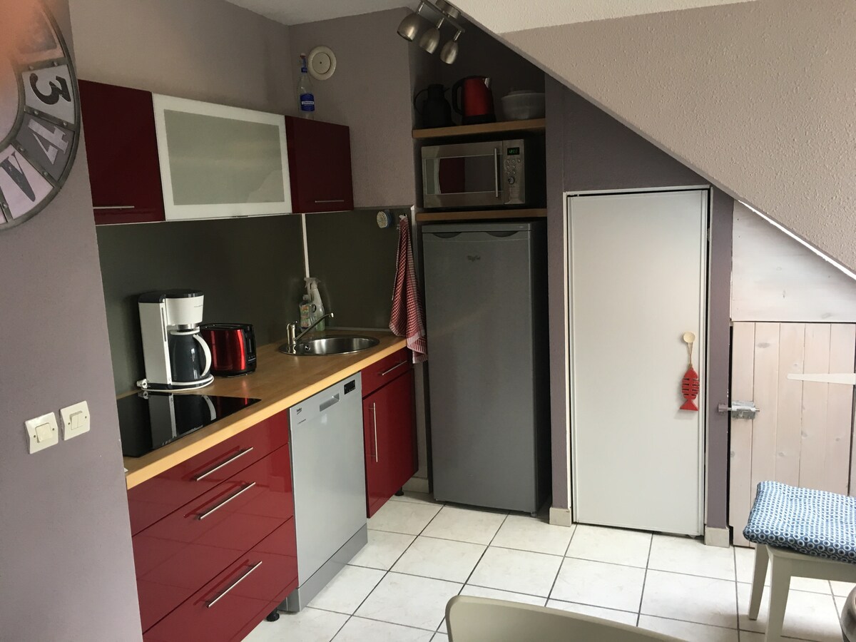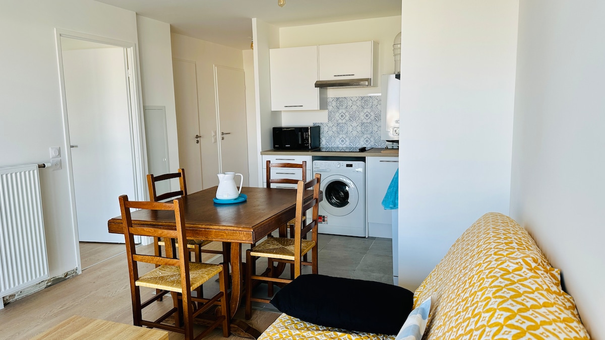 - 23平方メートルの設備の整ったワンルームマンション。息をのむような海の景色が楽しめ、非常に明るく、市内中心部に理想的な立地です。 夏季には、木製の遊歩道とビーチカビンを楽しむために、広場を渡るだけで済みます。 - お客様のご到着時に、カイユーとウールデルでの滞在中に無料で駐車できる駐車券をお渡しします。 - 無料Wi-Fi - 収容人数:最大2名 ペット同伴はお断りします チェックイン可能時間:16:00~19:00